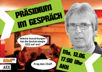 Am Montag, 13. Juni, um 17:00 Uhr ist KIT-Präsident Professor Hanselka im AKK zu Gast, um Fragen der Studierenden zu beantworten.