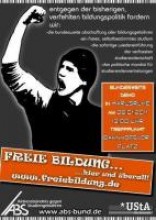 Der Arbeitskereis Freie Bildung kümmert sich vor allem um alles was mit dem Bildungsstreik zu tun hat. Ihr sein herzlich Eingeladen vorbei zu schauen und mitzuarbeiten. Aktuell geht es insbesondere um Organisation der bundesweiten Anti-Bildungsgebühren-Demo am 26.01.2011 in Karlsruhe. Neulinge sind ausdrücklich erwünscht!