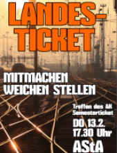 Treffen des AK Semesterticket zum Thema Landesticket am Donnerstag, 13. Februar, um 17.30 Uhr im AStA