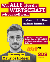 Das VWL-Studium braucht ein Update. Und zwar dringend. Wo die Wirklichkeit die Lehre eingeholt hat, erklärt Maurice Höfgen am 27.06. um 16:00 Uhr im kleinen Bau-Ing. Hörsaal am KIT.