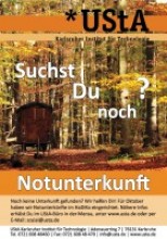Du hast noch keine Wohnung zum Semesterstart? Zur kurzfristigen Bekämpfung der Wohnungsnot in Karlsruhe hat der UStA, mit Unterstützung des HaDiKo, auch dieses Jahr wieder Notunterkünfte eingerichtet. Leider ist die Platzanzahl jedoch begrenzt. Solltest du Interesse an einer Notunterkunft haben kannst du dich mit dem verlinkten Antrag und einer Studienbescheinigung per Mail an sozial@usta.de um einen Platz bewerben. Wir bitten um dein Verständnis, dass wir die vorhandenen Plätze bevorzugt an Erstsemester vergeben, die einen weiten Weg nach Karlsruhe haben.